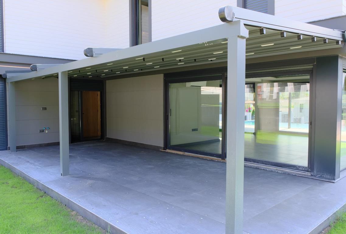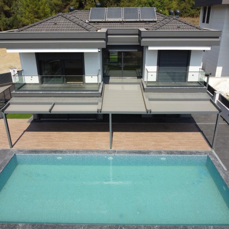 Удобства: На вилле установлена система автоматического открытия и закрытия веранд, а также имеется ухоженная озелененная территория. Для автомобилей предусмотрена открытая автостоянка.