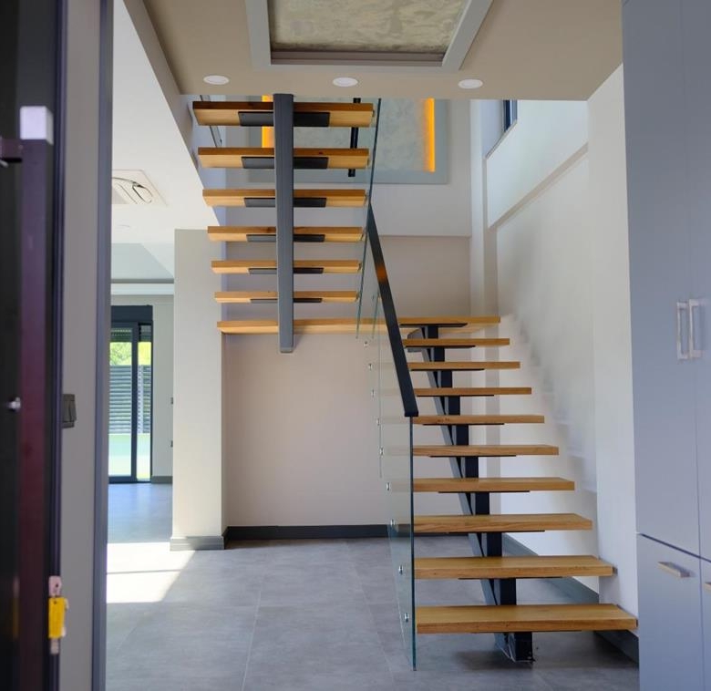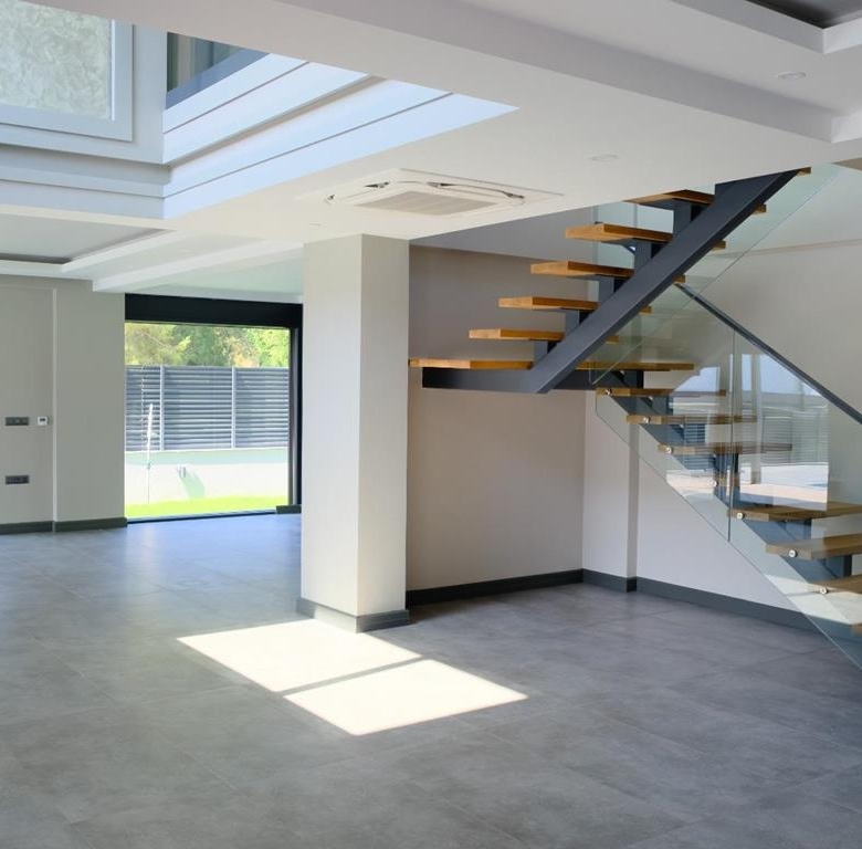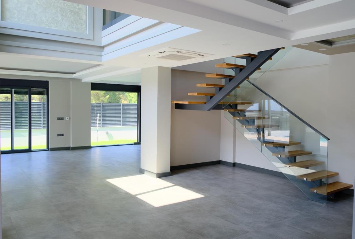 Архитектура и дизайн: Вилла имеет современный архитектурный стиль с четкими линиями и продуманной планировкой. Большие панорамные окна наполняют пространство естественным светом, создавая ощущение простора и свободы.