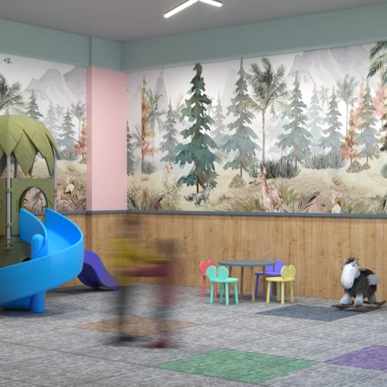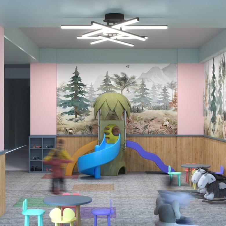 Для детей: Позвольте вашим детям расти в безопасной, веселой и творческой среде на специально спроектированной детской площадке.