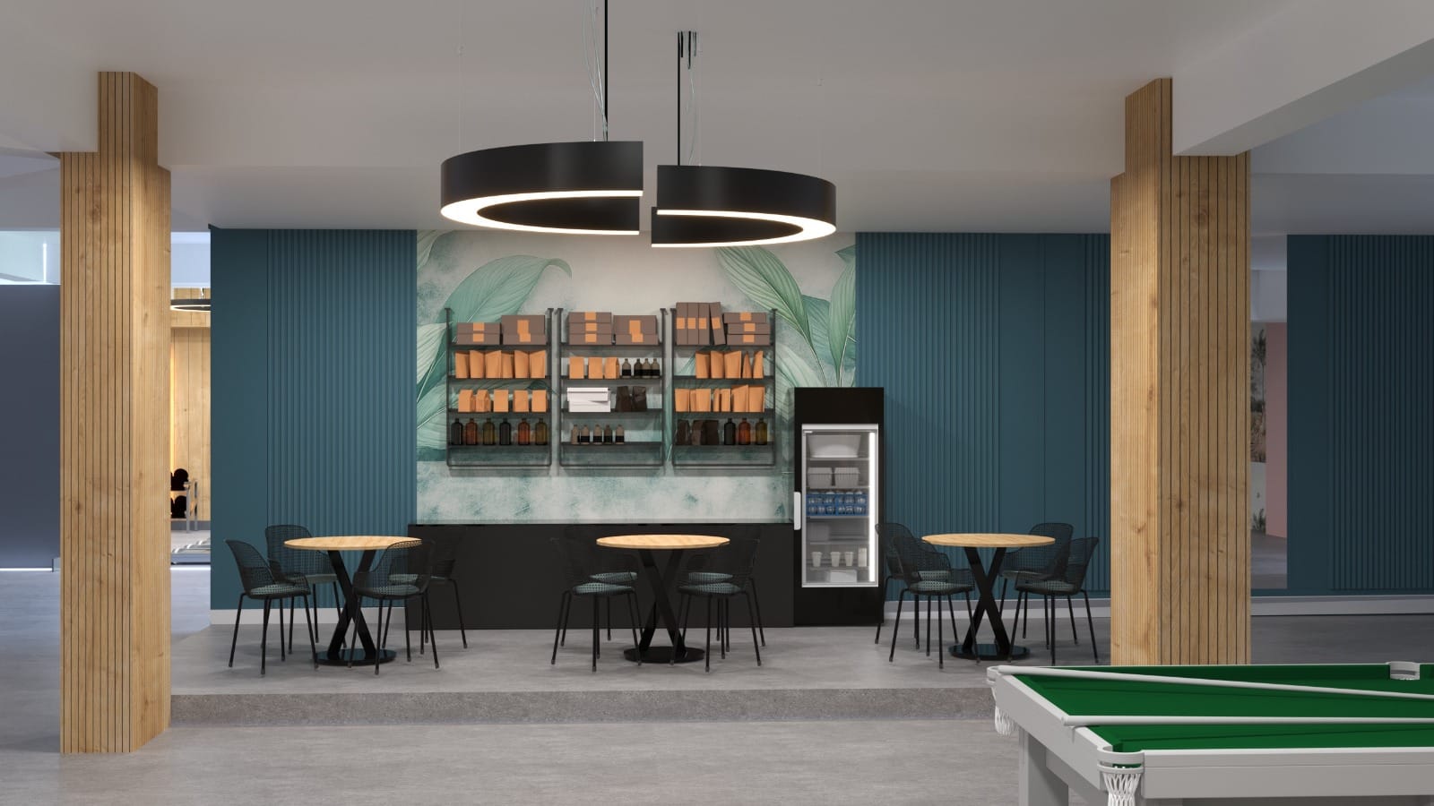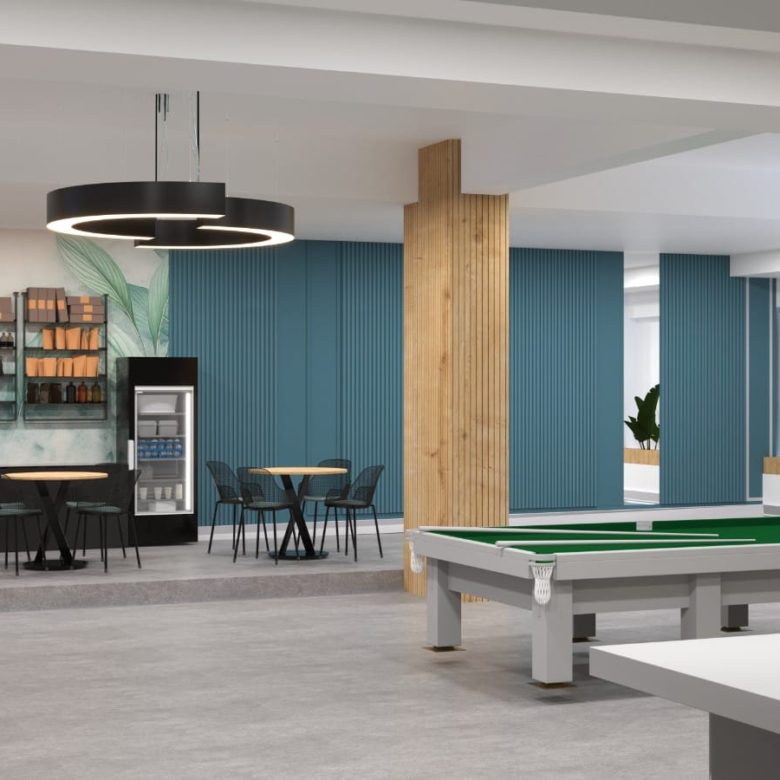 Зоны для общения: Укрепите свои социальные связи, проводя приятное время с соседями, благодаря современному кафе и игровым площадкам для взрослых (настольный футбол, бильярд, настольный теннис).